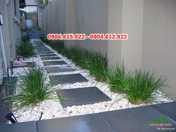 Con đường lát sỏi trắng tạo sự tương phản đẹp mắt