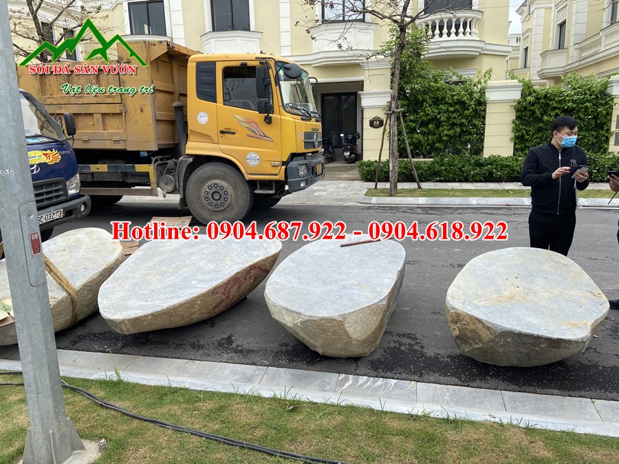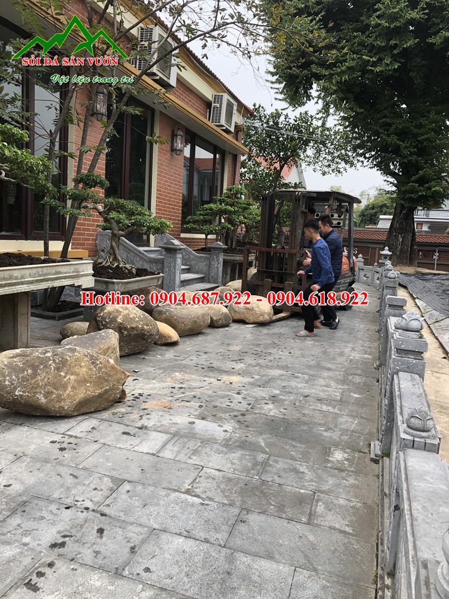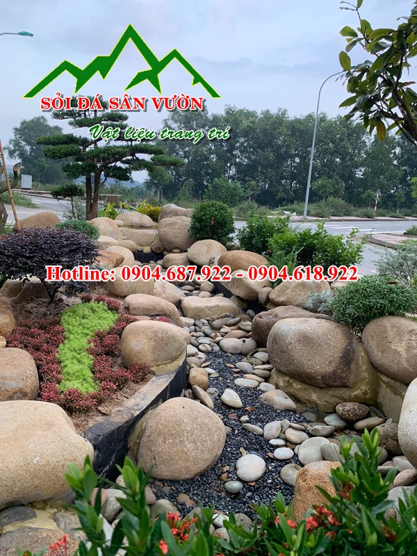 – Trang trí cảnh quan sân vườn bằng đá cuội lớn. Chúng thường đặt đặt ở các vị trí bãi cỏ sân vườn hoặc đồi nhân tạo nơi trồng những gốc cây lớn như tùng nhật, tùng la hán…Nhằm tạo cảm giác tự nhiên cho cảnh quan. Như một điểm nhấn đặc biệt để Quý khách đến chơi khi vừa nhìn thấy đã có cảm giác nhẹ nhàng, thân thiện.