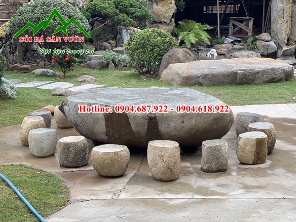 đá cuội làm bàn ghế sân vườnbán ghế đá cuội cảnh quan