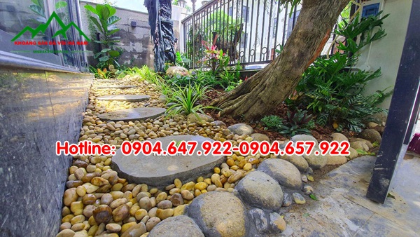 - Đá sỏi lát sân vườn là đá tự nhiên như đá Hà Nam, Thanh Hóa, Lai Châu, Đà Nẵng, Bình Định… là một trong những lựa chọn hàng đầu. Với những tảng đá lớn được cắt ra theo.kích cỡ hình thù khác nhau tùy thuộc vào sở thích và thiết kế của từng nhà. Với những tính chất phù hợp với yêu cầu để lát sân vườn