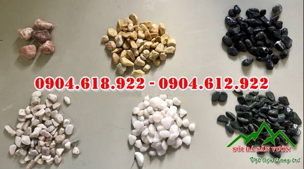 Các loại sỏi tự nhiên bao gồm: sỏi cuội trắng, vàng, nâu, đen, đỏ; đá cuội vàng, đá cuội vân mây, sỏi sông nhiều màu, sỏi biển…Kích thước đa dạng từ 2mm đến 100cm tuỳ nhu cầu sử dụng khách hàng.