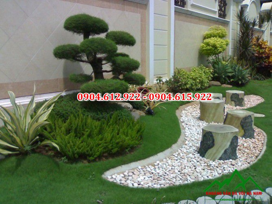 – Rải sỏi trang trí sân vườn: Thay vì đổ bê tông nhàm chán, làm lối đi bằng đất bình thường, các bạn có thể sử dụng sỏi để rải lối đi trong sân vườn. Cách này vừa giúp lối đi sạch, đẹp, tránh đọng nước, tạo màu sắc nổi bật cho sân vườn. Cùng với đó là thời gian thi công nhanh chóng.
