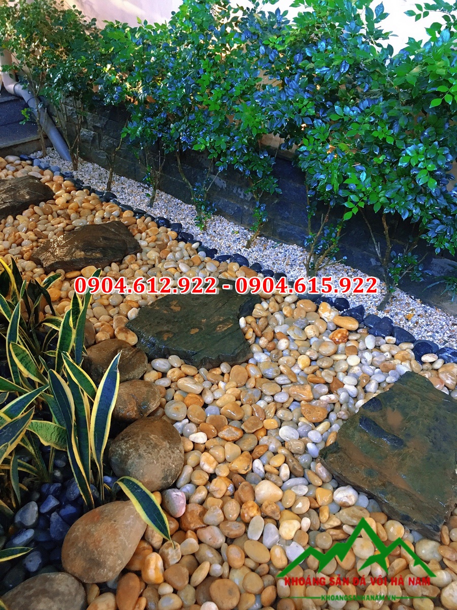 Sỏi rải sân vườn có màu sắc khá đa dạng: Trắng, đen, vàng, hồng… Các loại sỏi nhân tạo còn được nhuộm màu để phục vụ cho mục đích trang trí sân vườn, nhà ở tiện lợi hơn. Do đó, không khó để bắt gặp những viên sỏi màu đỏ, hồng… được bày bán phổ biến trên thị trường.