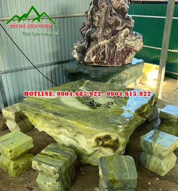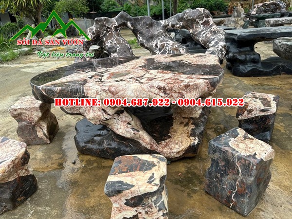 – Bàn ghế đá tự nhiên nguyên khối có thể phù hợp với nhiều không gian.