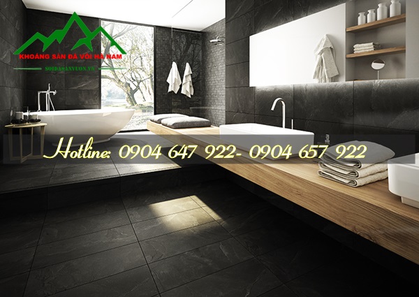Đá đen Lai Châu không thấm nước, không rêu mốc nên ứng dụng trong phòng tắm, nhà vệ sinh