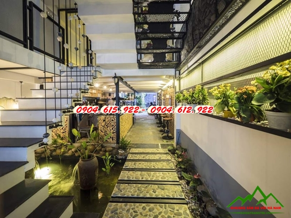 Các loại đá tự nhiên trang trí được lựa chọn đều là những loại đá có hình dáng thô nhám, độc đáo. Ít có sự gia công của con người hầu như đều làm thủ công hoặc hoàn toàn tự nhiên 100% như. Đá thớt bazan làm lối đi, đá cuội làm hồ cá và sỏi tự nhiên dùng trang trí tường… Kết hợp cùng rất nhiều loại cây xanh, đa phần là loại cây dễ sống. Hay cây có khả năng bài trừ không khí độc tạo không khí trong lành. Và đặc biệt có thể thỏa mãn nhu cầu sống ảo của các bạn trẻ với rất nhiều vị trí chụp ảnh đẹp.