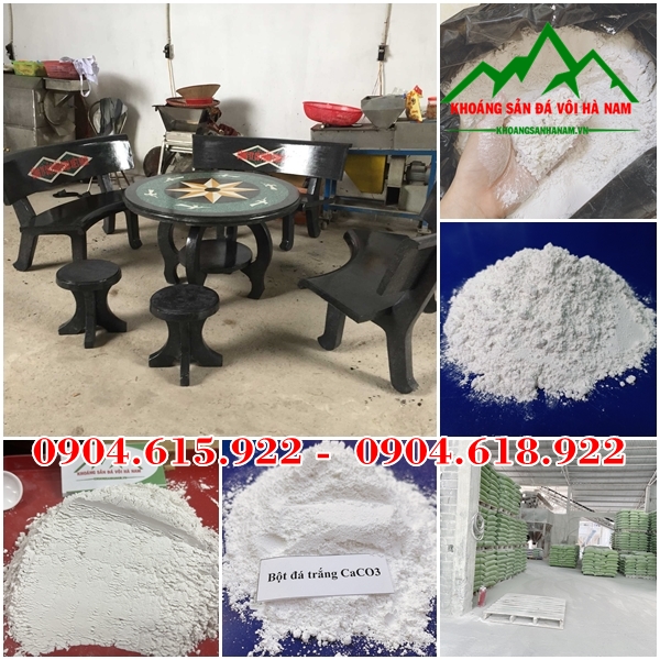 - Bột đá CaCO3 là nguyên liệu chính trong sản xuất mài Granito, ghế đá,…