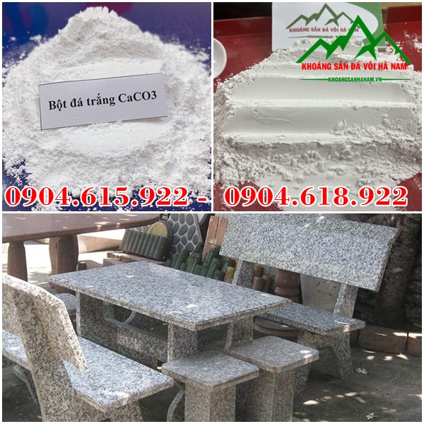 - Bột đá CaCO3 là nguyên liệu chính trong sản xuất mài Granito, ghế đá,…