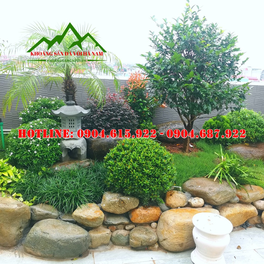 + Sỏi đá cuội trang trí sân vườn  kết hợp sỏi cỏ cây hóa lá mang lại cho chúng ta cảm giác được hòa mình vào thiên nhiên.