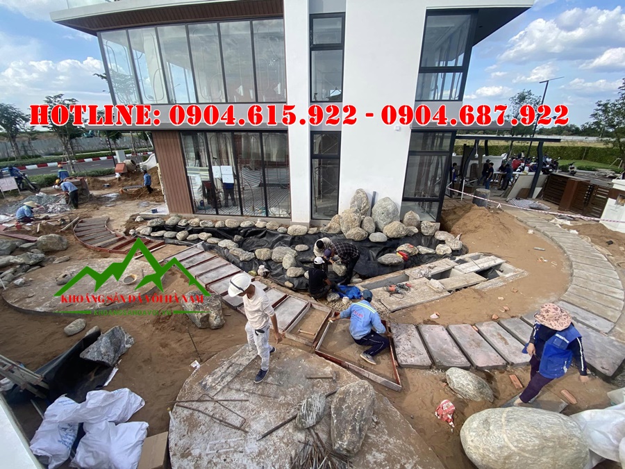 + Đá cuội lớn tự nhiên sử dụng trong công trình sân vườn biệt thự, cảnh quan đô thị, Vinhomes, resort, khu nghỉ dưỡng…