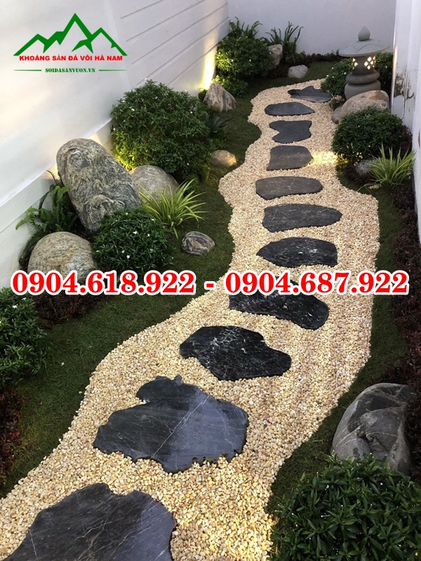 Sự kết hợp giữa sỏi và cây xanh giúp tạo nên một bức tranh hài hoà, tươi mát cho sân vườn của bạn. Bên cạnh đó, kết hợp những viên đá bước dạo để lát lối đi.sẽ giúp tạo điểm nhấn cho sân vườn của bạn.
