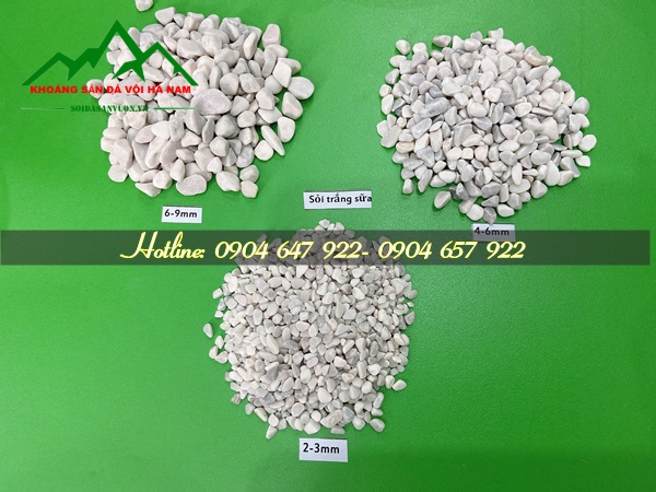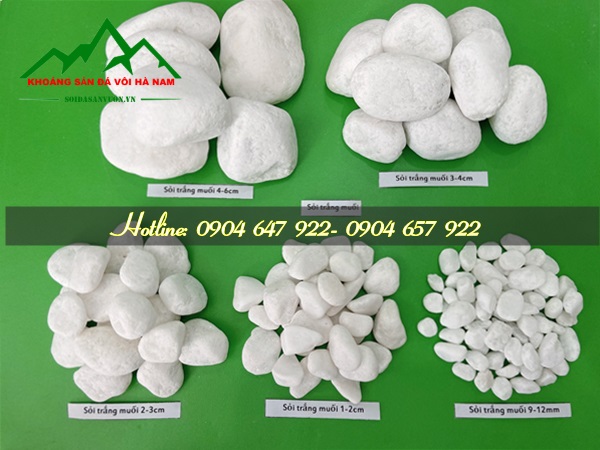 Sỏi trắng muối, trắng sữa (hay còn gọi là sỏi nhân tạo) là dòng sản phẩm có kích cỡ đa dạng nhất. Hiện nay chúng tôi đang sản xuất kích cỡ 2-3mm, 3-4mm, 4-5mm, 5-7mm, 7-9mm, 10-20mm, 20-30mm, 20-40mm, 40-50mm hoặc theo yêu cầu khách hàng.
