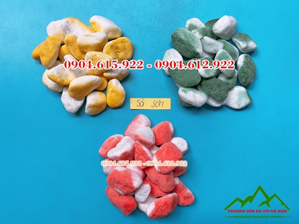 – Sỏi sơn (màu: xanh lá, hồng, vàng): 9-12mm, 1-2cm, 2-3cm