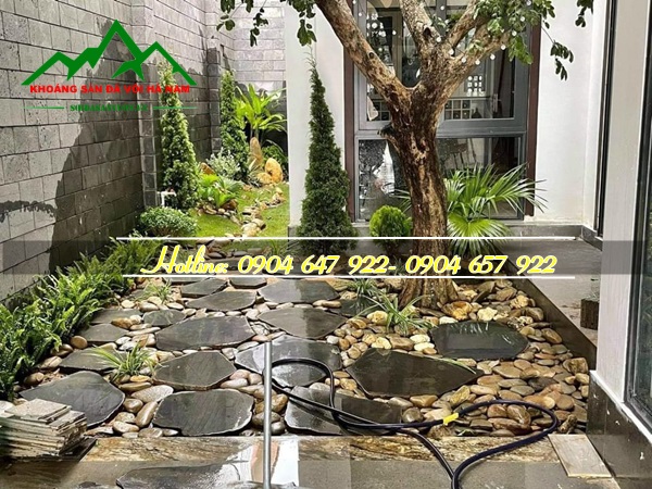 Sỏi mang vẻ đẹp tự nhiên mang cảm giác thoải mái, dễ chịu đặc biệt, gần gũi với thiên nhiên. Một sân vườn đẹp là kết hợp nhiều yếu tố: cỏ cây hoa lá, vật liệu gỗ, bể cá, đá sỏi trang trí…