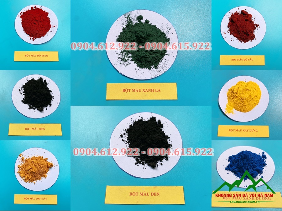 Công Ty TNHH Khoáng Sản Đá Vôi Hà Nam. Chuyên cung cấp các loại bột màu, bột màu xây dựng, bột màu oxit sắt, bột màu làm phân bón, bột màu làm đồ gỗ, ván ép…